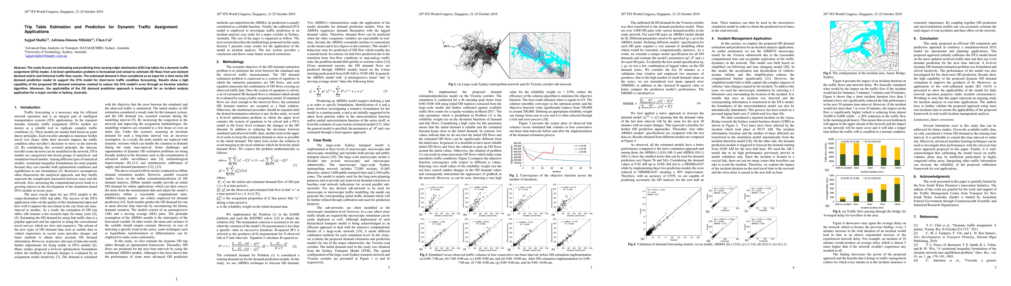 This study estimates and predicts time-varying origin-destination (OD) trip tables for dynamic traffic assignment models using a bi-level optimization approach. The method reduces DTA model error and is tested for incident analysis in Sydney, Australia.
