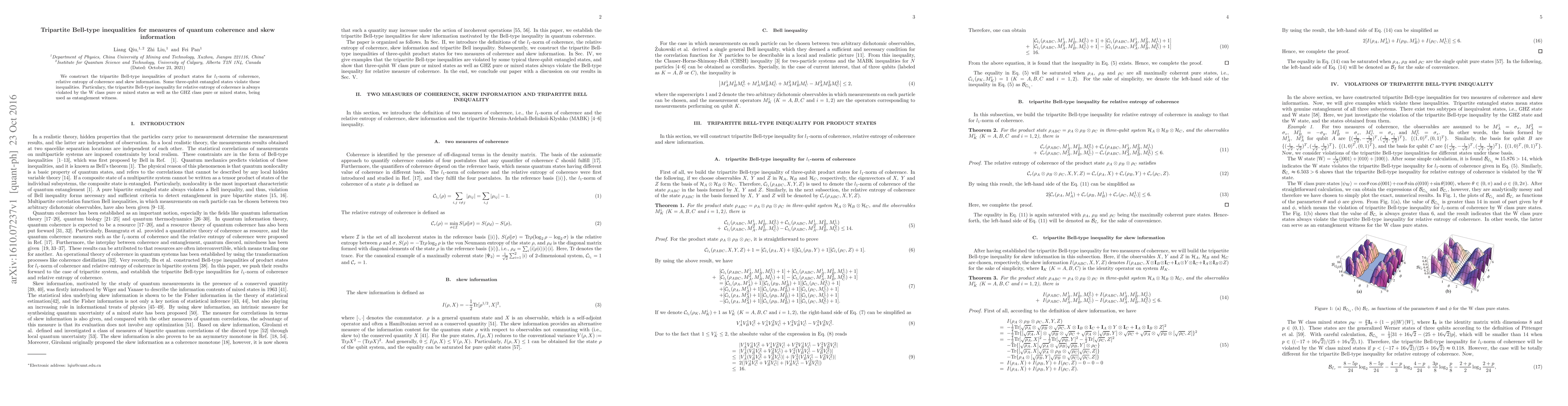 This paper constructs tripartite Bell-type inequalities for measures of quantum coherence and skew information, revealing that certain three-qubit entangled states, particularly W and GHZ class states, consistently violate these inequalities, serving as entanglement witnesses.