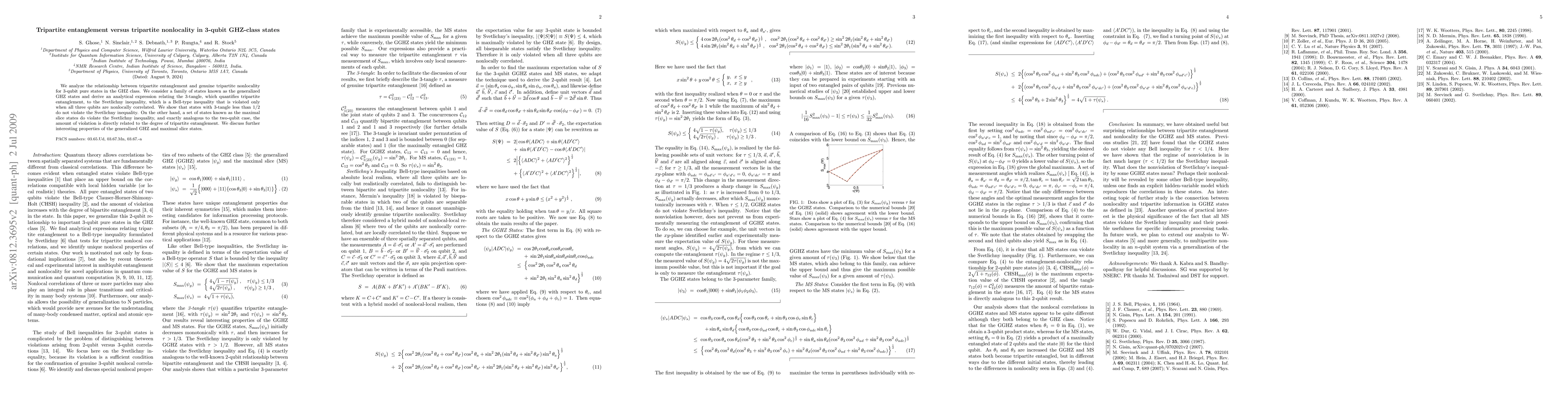 This paper investigates the connection between tripartite entanglement and genuine tripartite nonlocality in 3-qubit GHZ-class states. It finds that states with a 3-tangle below 1/2 do not violate the Svetlichny inequality, while maximal slice states do, with the degree of violation directly correlating to the level of entanglement.