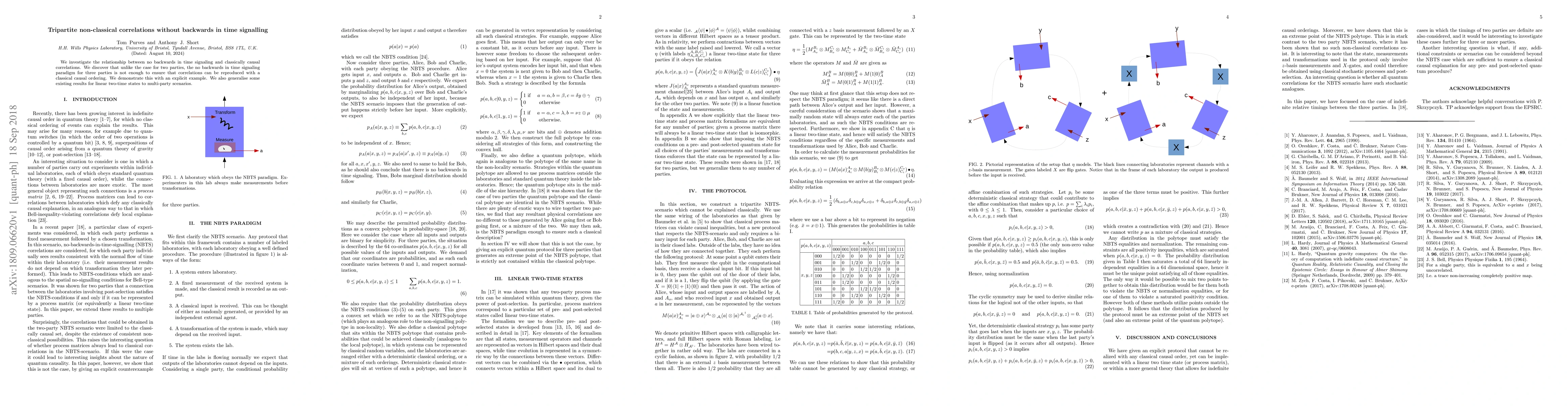 This paper explores tripartite non-classical correlations and finds that no backwards in time signaling does not guarantee classically causal correlations in three-party systems, unlike in two-party scenarios. An example is provided to illustrate this, and existing results for two-time states are generalized for multi-party contexts.