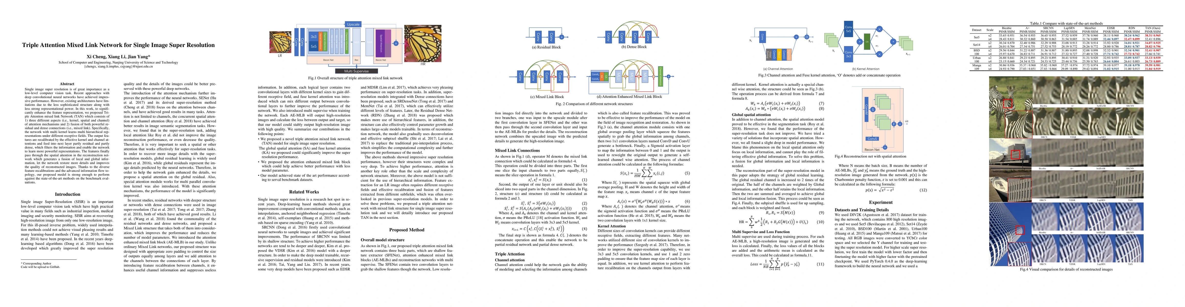 This paper proposes a new neural network architecture called Triple Attention Mixed Link Network for single image super resolution, which improves feature representation and quality of reconstructed images.