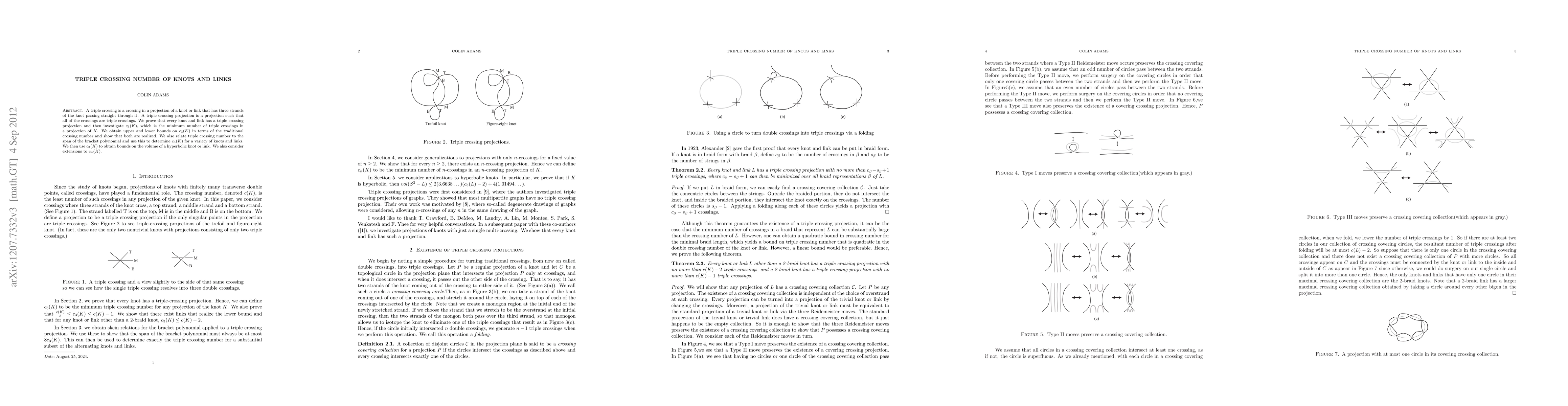 This paper proves the existence of triple crossing projections for all knots and links and investigates the minimum number of triple crossings, denoted c_3(K). It establishes bounds for c_3(K) in relation to the traditional crossing number and explores connections to the span of the bracket polynomial and hyperbolic knot volumes.