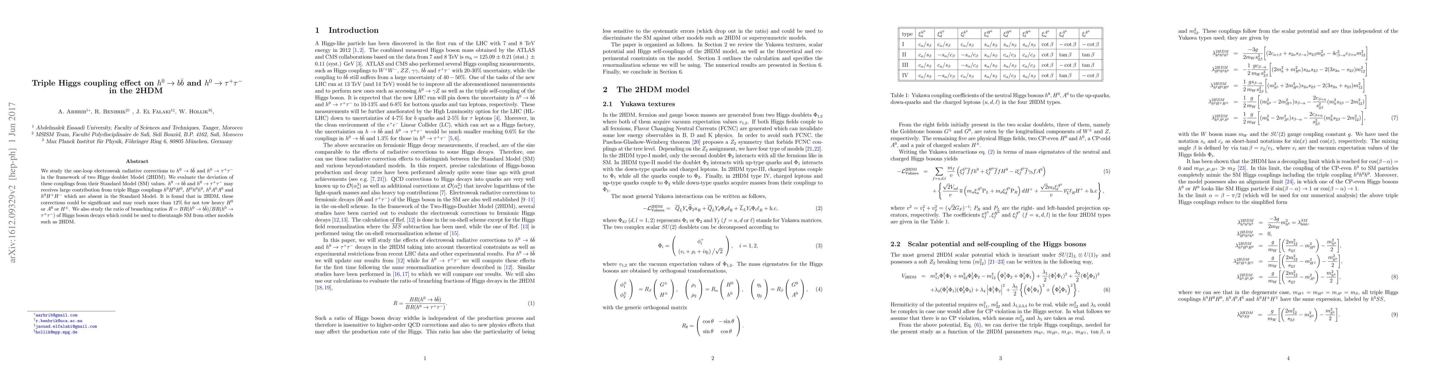 This paper investigates one-loop electroweak corrections in the Two Higgs Doublet Model (2HDM) affecting the decays $h^0\to b\bar{b}$ and $h^0\to \tau^+\tau^-$, finding significant deviations from Standard Model values due to triple Higgs couplings. The study suggests these corrections can exceed 20% for certain heavy Higgs states, and analyzes the branching ratio ratio $R$ to differentiate 2HDM from the Standard Model.