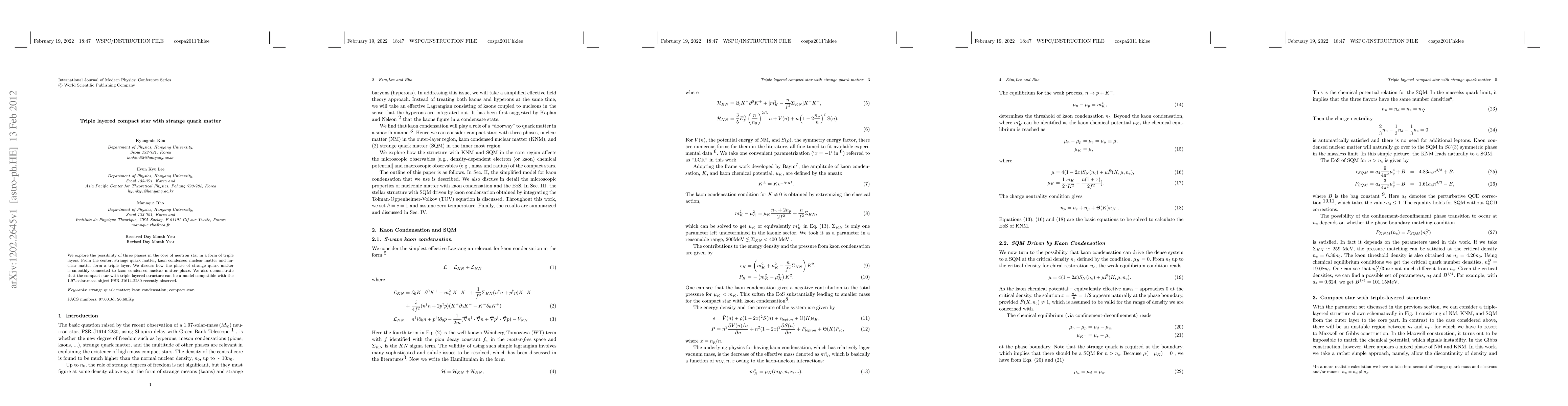 We explore the possibility of three phases in the core of neutron star in a form of triple layers. From the center, strange quark matter, kaon condensed nuclear matter and nuclear matter form a triple layer. We discuss how the phase of strange quark matter is smoothly connected to kaon condensed nuclear matter phase. We also demonstrate that the compact star with triple layered structure can be a model compatible with the 1.97-solar-mass object PSR J1614-2230 recently observed.