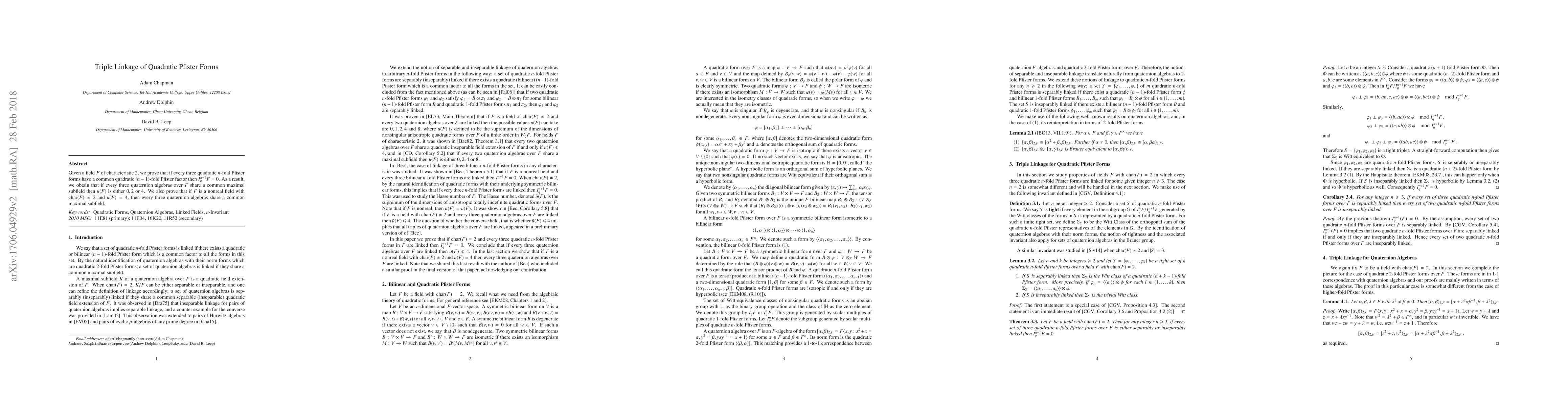 Given a field $F$ of characteristic 2, we prove that if every three quadratic $n$-fold Pfister forms have a common quadratic $(n-1)$-fold Pfister factor then $I_q^{n+1} F=0$. As a result, we obtain that if every three quaternion algebras over $F$ share a common maximal subfield then $u(F)$ is either $0,2$ or $4$. We also prove that if $F$ is a nonreal field with $\operatorname{char}(F) \neq 2$ and $u(F)=4$, then every three quaternion algebras share a common maximal subfield.
