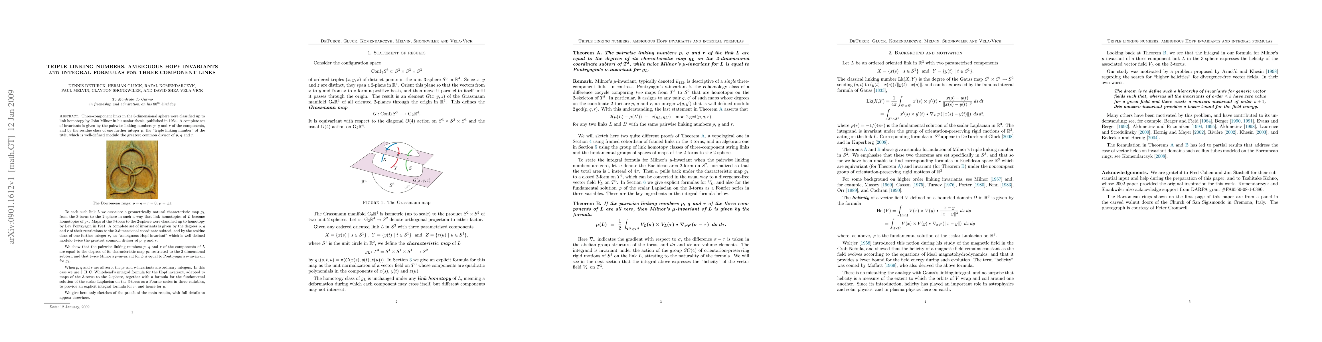 This paper classifies three-component links in the 3-dimensional sphere by introducing the triple linking number and ambiguous Hopf invariant, showing their equivalence via characteristic maps. An integral formula is provided for these invariants when the pairwise linking numbers are zero, using Whitehead's Hopf invariant formula and Fourier series.