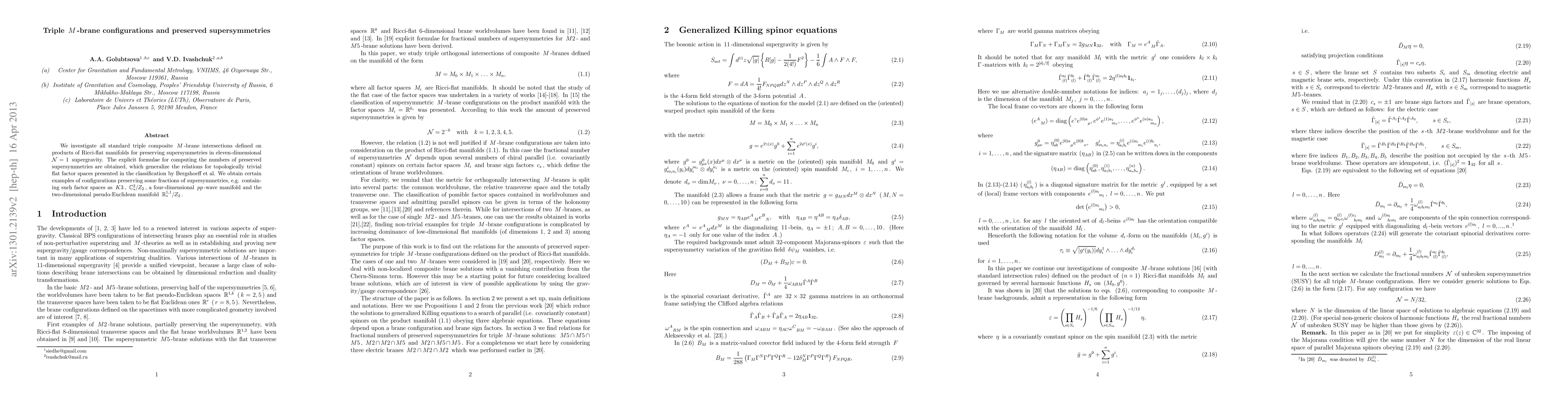 We investigate all standard triple composite M-brane intersections defined on products of Ricci-flat manifolds for preserving supersymmetries in eleven-dimensional N =1 supergravity. The explicit formulae for computing the numbers of preserved supersymmetries are obtained, which generalize the relations for topologically trivial flat factor spaces presented in the classification by Bergshoeff et al. We obtain certain examples of configurations preserving some fractions of supersymmetries, e.g. containing such factor spaces as K3, C^2_{*}/Z_2, a four-dimensional pp-wave manifold and the two-dimensional pseudo-Euclidean manifold R^{1,1}_{*}/Z_2.