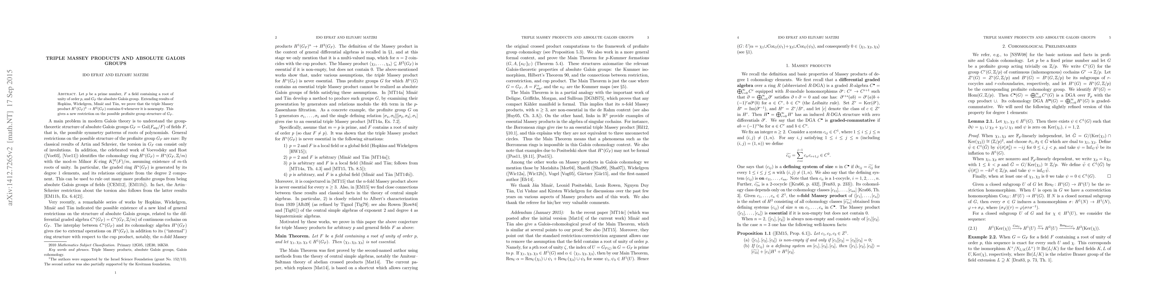This paper proves that the triple Massey product $H^1(G_F)^3 \to H^2(G_F)$ is zero when nonempty, providing new constraints on the profinite group structure of the absolute Galois group $G_F$ of fields containing a $p$-th root of unity.