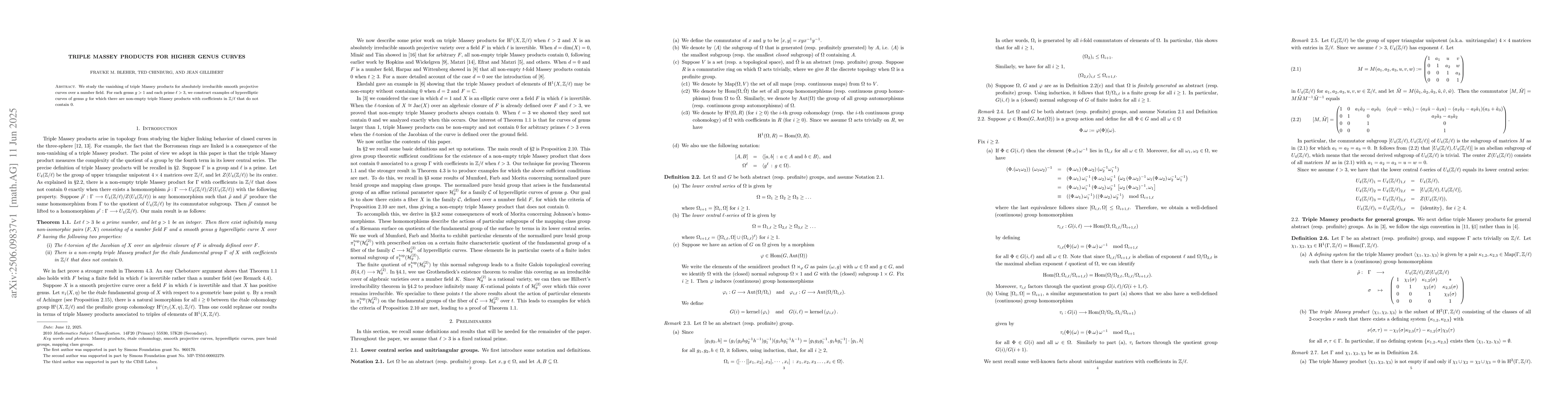 Researchers found examples of hyperelliptic curves with non-empty triple Massey products that do not contain 0, contradicting the vanishing of such products for absolutely irreducible smooth projective curves.