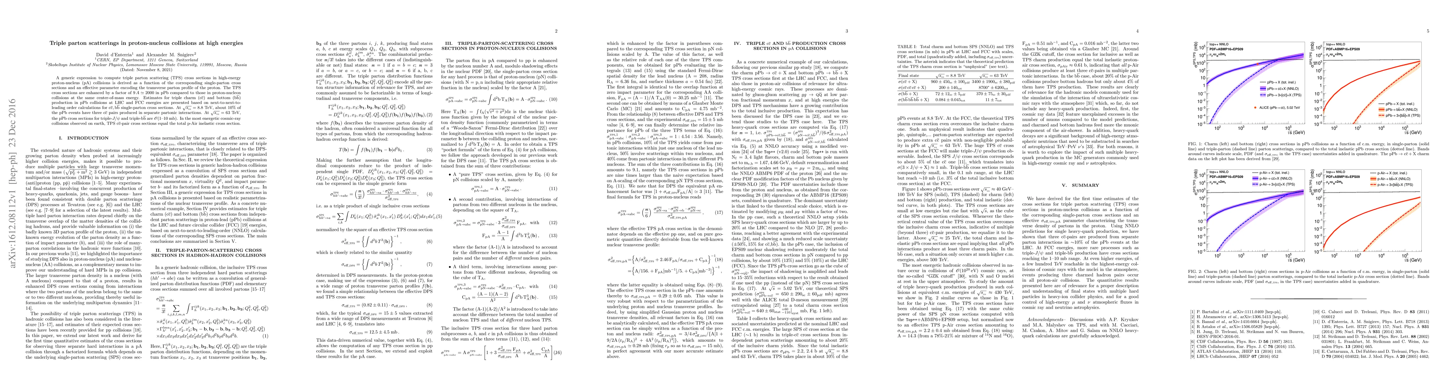 This paper derives a formula for calculating triple parton scattering (TPS) cross sections in high-energy proton-nucleus collisions, showing that TPS cross sections are significantly enhanced in pPb collisions compared to proton-nucleon collisions. It also estimates the production rates of triple charm and bottom pairs in pPb collisions at LHC and FCC energies, finding notable occurrences of such events.