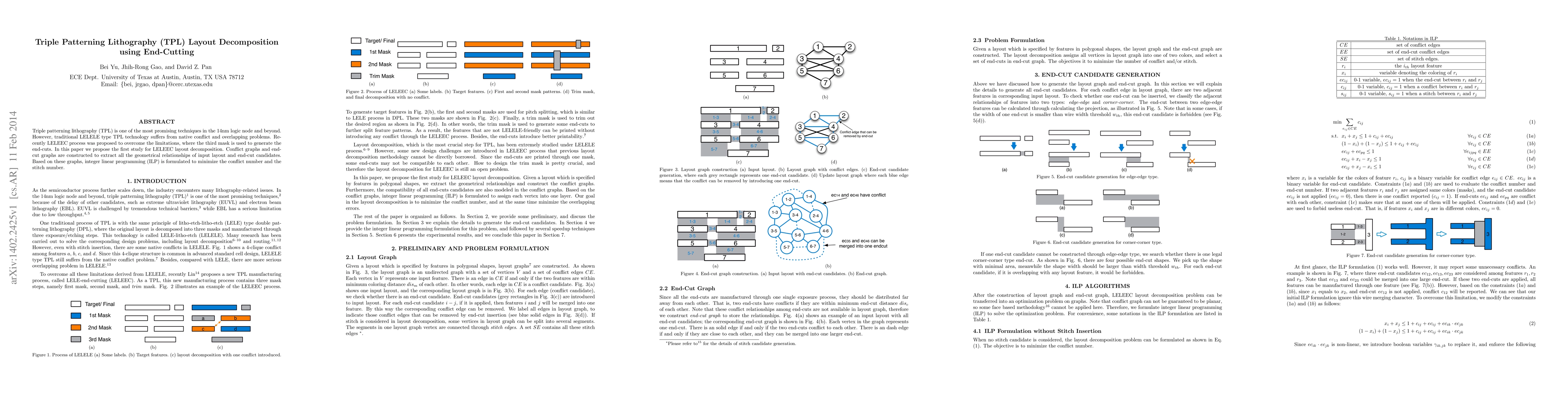 This paper proposes a novel layout decomposition method for the LELEEC type of Triple Patterning Lithography (TPL) to address native conflict and overlapping issues. It constructs conflict and end-cut graphs to extract geometrical relationships and formulates an integer linear programming model to minimize conflicts and stitch numbers.