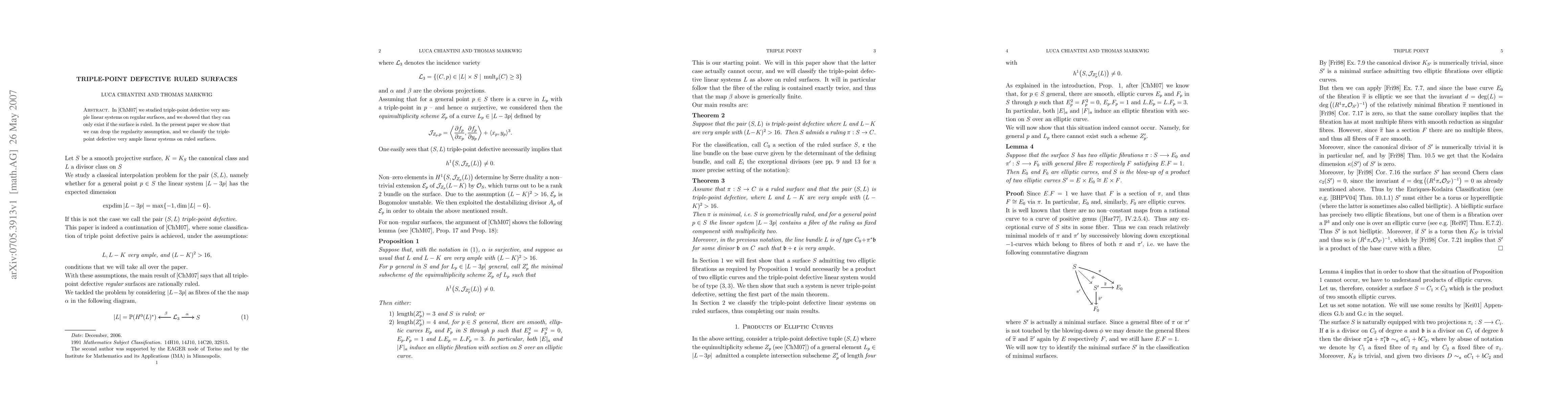 In arXive:0705.3912 we studied triple-point defective very ample linear systems on regular surfaces, and we showed that they can only exist if the surface is ruled. In the present paper we show that we can drop the regularity assumption, and we classify the triple-point defective very ample linear systems on ruled surfaces.