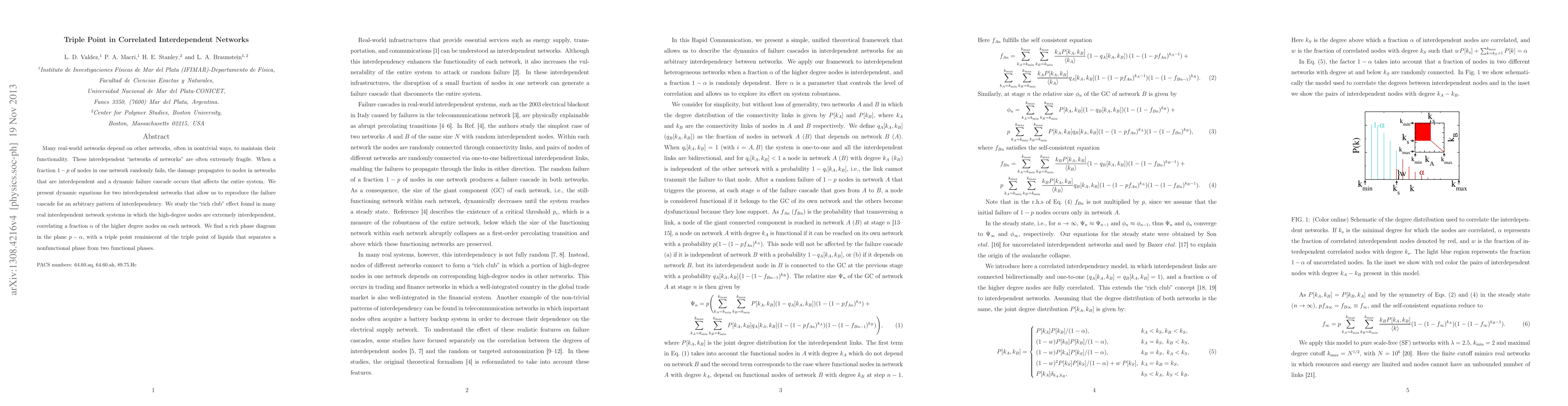 This paper investigates the fragility of interdependent networks, presenting dynamic equations to model failure cascades. It explores the "rich club" effect and identifies a triple point in the $p-\alpha$ plane, analogous to the triple point in liquid phases, distinguishing non-functional from functional network states.