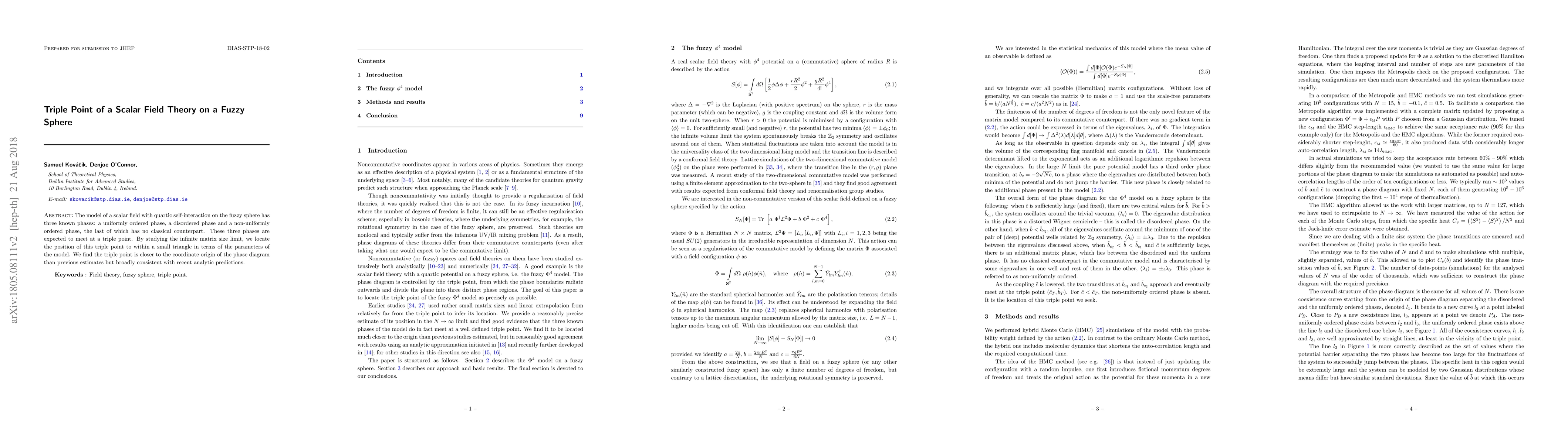 Researchers locate a triple point in a complex scalar field theory on a fuzzy sphere, finding it closer to the origin than previous estimates, with implications for understanding phase transitions and unique quantum states.
