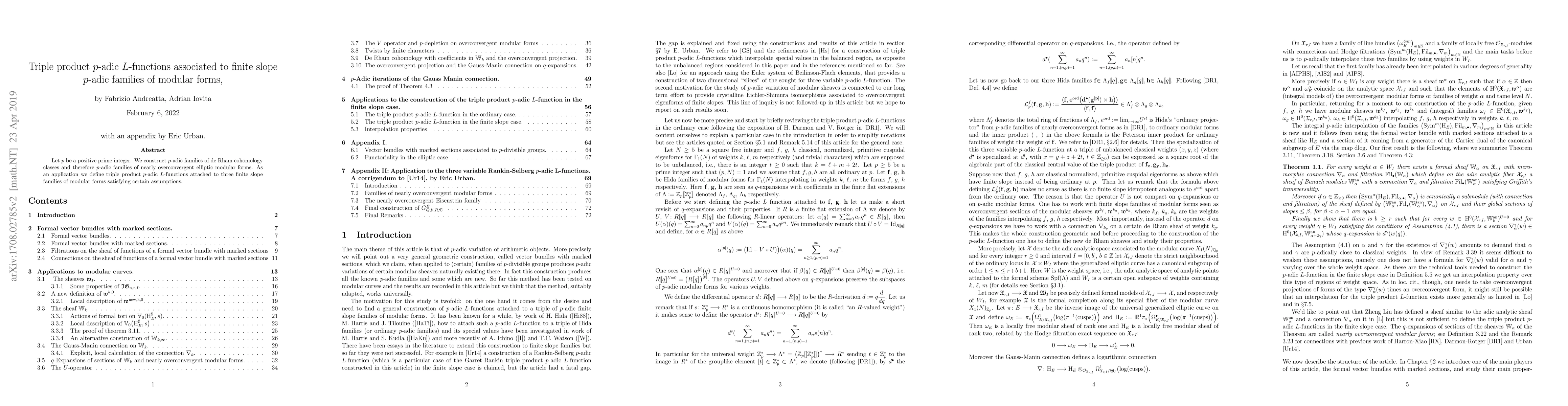 This paper p-adically interpolates the relative de Rham cohomology of elliptic curves and constructs p-adic L-functions associated with triples of modular forms, extending previous work on Coleman forms and generalizing Hida families. An appendix by Eric Urban provides additional insights.