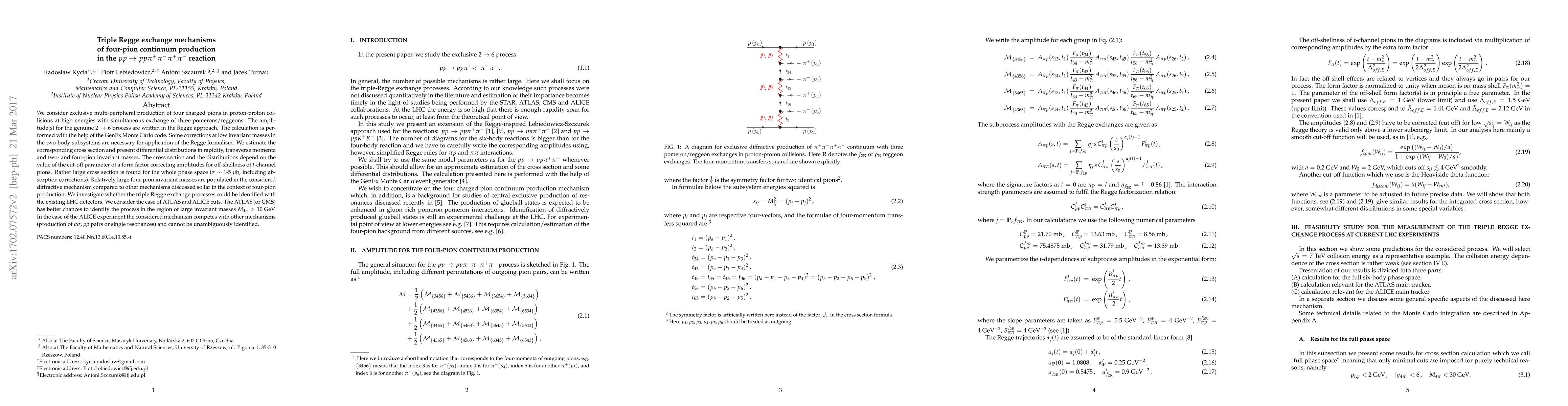 Researchers studied proton-proton collisions at high energies to produce four charged pions, using a triple Regge exchange mechanism. They found a relatively large cross-section and significant populations of four-pion invariant masses, but identified challenges in distinguishing this process from others with existing LHC detectors.