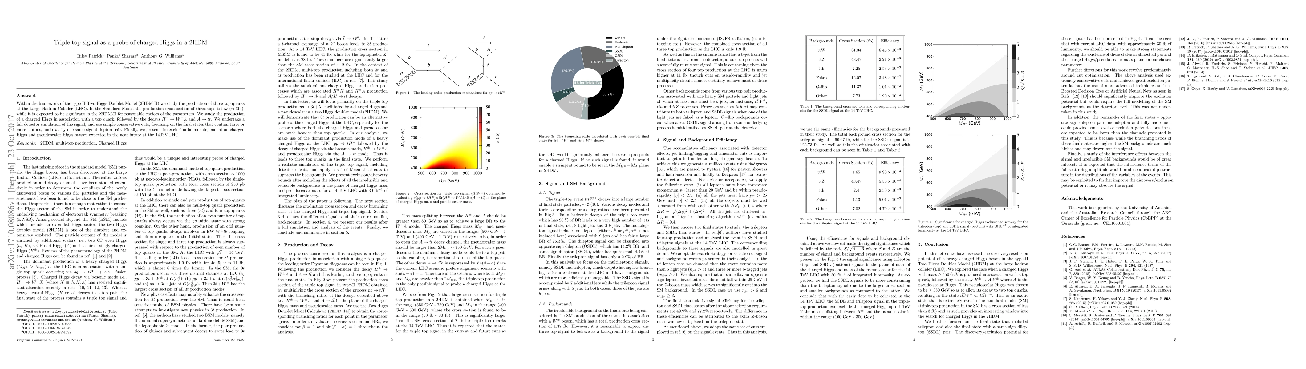 Within the framework of the type-II Two Higgs Doublet Model (2HDM-II) we study the production of three top quarks at the Large Hadron Collider (LHC). In the Standard Model the production cross section of three tops is low ($\approx 3$fb), while it is expected to be significant in the 2HDM-II for reasonable choices of the parameters. We study the production of a charged Higgs in association with a top quark, followed by the decays $H^{\pm} \to W^{\pm}A$ and $A \to t\bar{t}$. We undertake a full detector simulation of the signal, and use simple conservative cuts, focusing on the final states that contain three or more leptons, and exactly one same sign di-lepton pair. Finally, we present the exclusion bounds dependent on charged Higgs and pseudoscalar Higgs masses expected in the near future at the 14TeV LHC.
