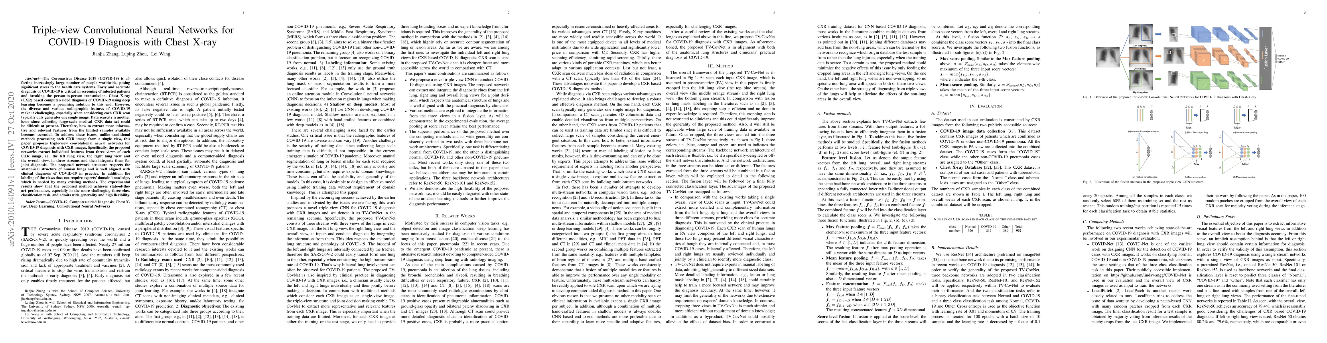 This paper proposes triple-view convolutional neural networks for diagnosing COVID-19 using chest X-rays, extracting features from left lung, right lung, and overall views to enhance diagnosis accuracy. The method achieves state-of-the-art performance, especially in three-class classification, demonstrating high flexibility and generalizability.