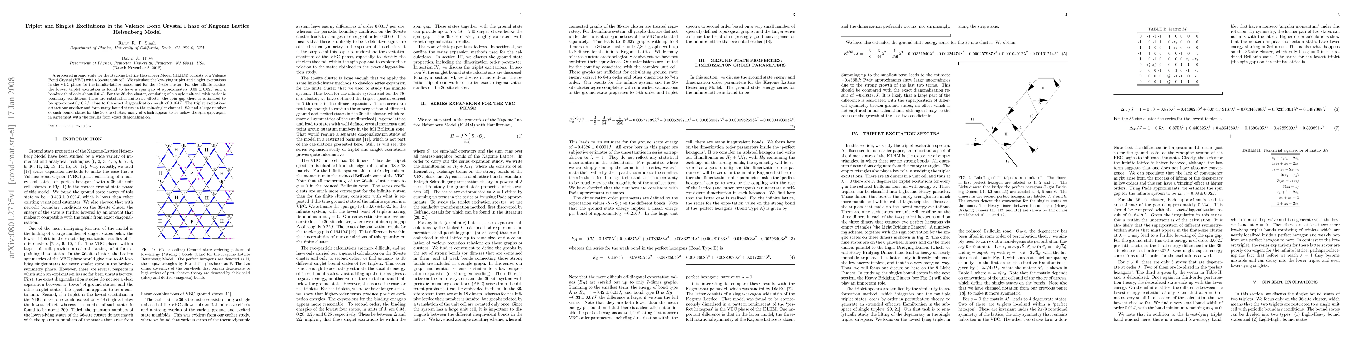 This study investigates the low-lying triplet and singlet excitations in the Valence Bond Crystal phase of the Kagome Lattice Heisenberg Model, revealing a spin gap and numerous bound states, with significant finite-size effects observed in the 36-site cluster compared to the infinite lattice.