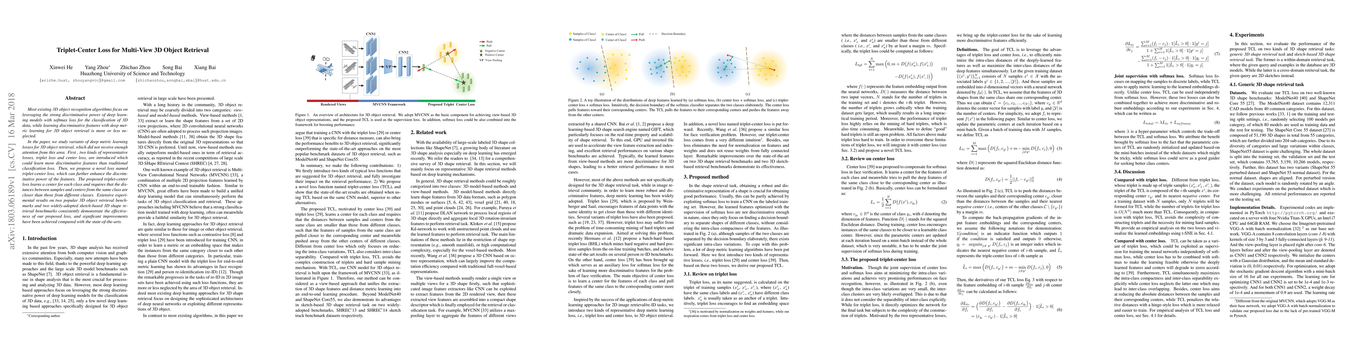 This paper proposes a novel triplet-center loss for enhancing discriminative features in 3D object retrieval, combining triplet and center losses to improve feature learning over traditional classification methods. Experimental results show significant improvements over state-of-the-art methods on multiple benchmarks.