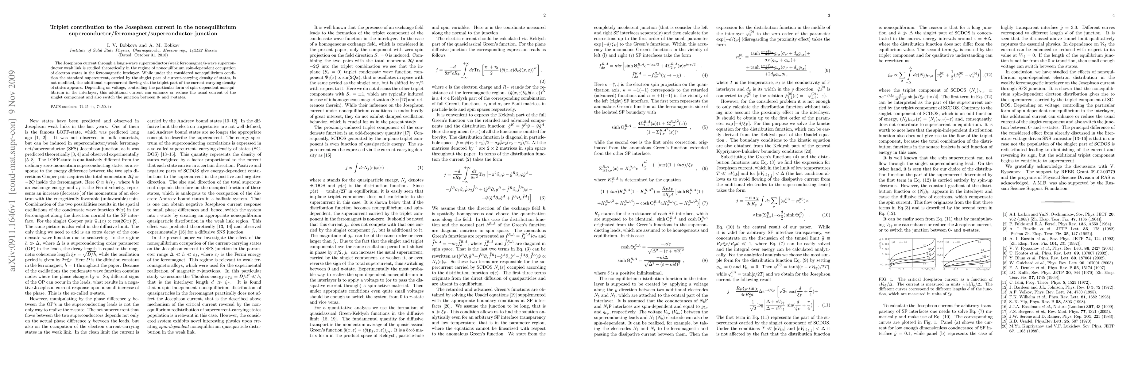 This paper investigates the Josephson current in a superconductor/ferromagnet/superconductor junction under nonequilibrium conditions, revealing that an additional triplet supercurrent emerges, which can modify the conventional singlet supercurrent and influence the junction's state between 0- and π-phases depending on the applied voltage.