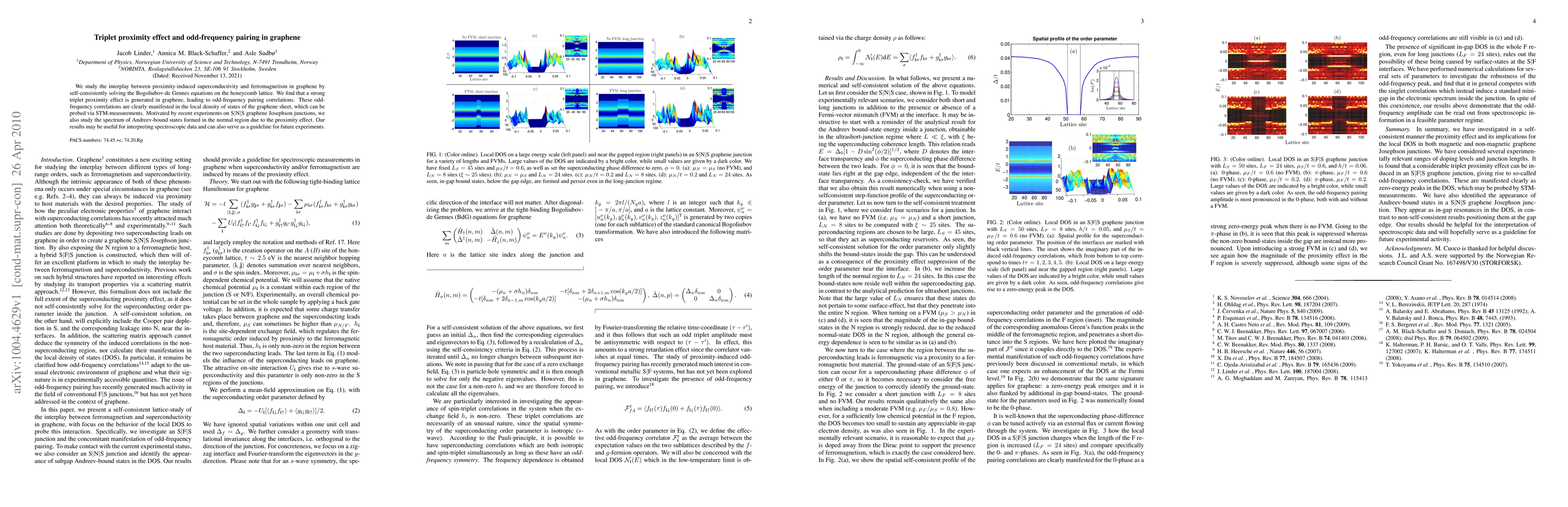 This paper investigates the interplay between superconductivity and ferromagnetism in graphene, revealing a strong triplet proximity effect that generates odd-frequency pairing correlations. These correlations are evident in the local density of states and can be detected via STM measurements, providing insights for interpreting spectroscopic data and guiding future experiments.