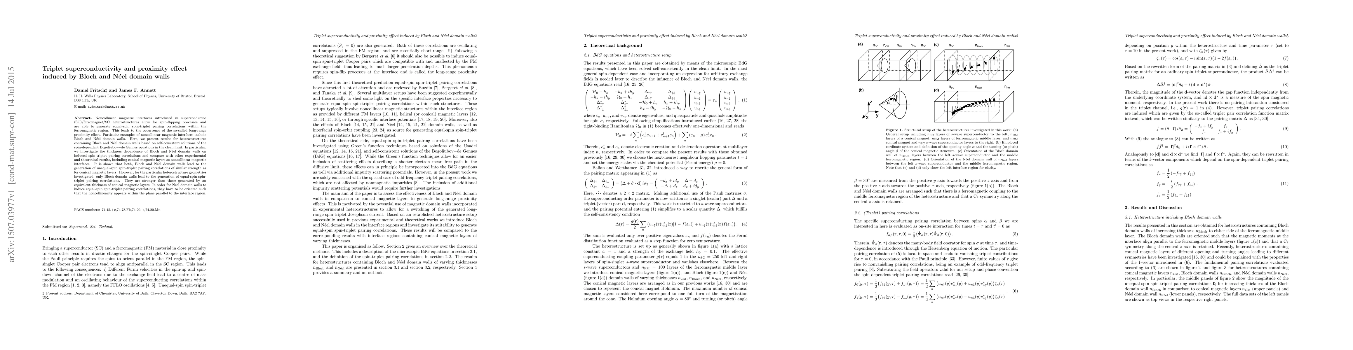 This paper investigates the impact of Bloch and Néel domain walls on spin-triplet pairing correlations in superconductor/ferromagnet/superconductor heterostructures. It finds that both types of domain walls generate unequal-spin spin-triplet pairing, but only Bloch walls induce stronger equal-spin spin-triplet pairing correlations compared to conical magnetic layers.