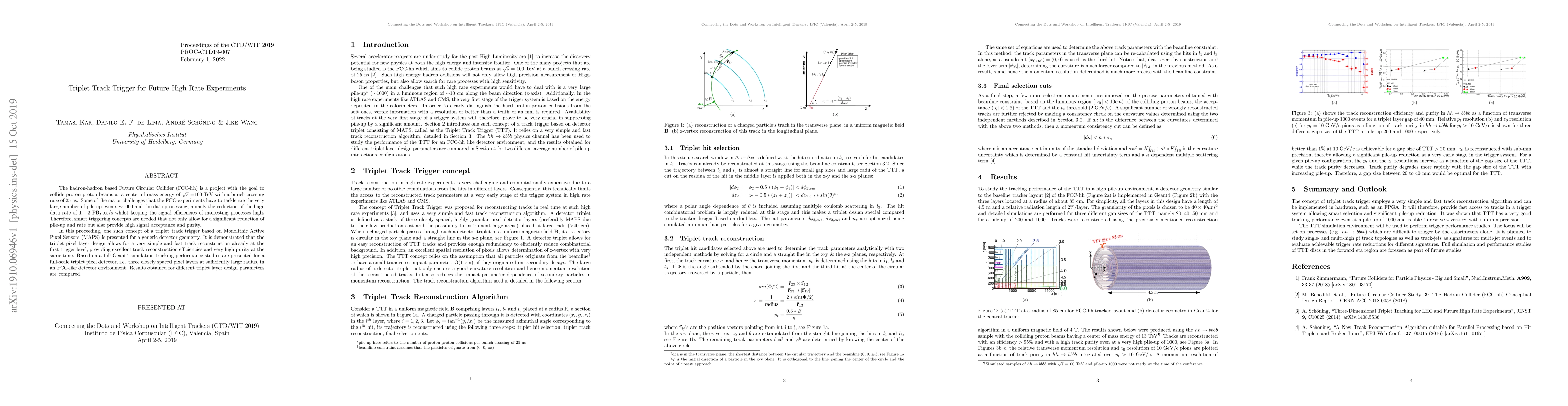 The hadron-hadron based Future Circular Collider (FCC-hh) is a project with the goal to collide proton-proton beams at a center of mass energy of sqrt(s)=100 TeV with a bunch crossing rate of 25 ns. Some of the major challenges that the FCC-experiments have to tackle are the very large number of pile-up events of around 1000 and the data processing, namely the reduction of the huge data rate of 1-2 PBytes/s whilst keeping the signal efficiencies of interesting processes high. Therefore, smart triggering concepts are needed that not only allow for a significant reduction of pile-up and rate but also provide high signal acceptance and purity. In this proceeding, one such concept of a triplet track trigger based on Monolithic ActivePixel Sensors (MAPS) is presented for a generic detector geometry. It is demonstrated that the triplet pixel layer design allows for a very simple and fast track reconstruction already at the first trigger level, providing excellent track reconstruction efficiencies and very high purity at the same time. Based on a full Geant4 simulation tracking performance studies are presented for a full-scale triplet pixel detector, i.e. three closely spaced pixel layers at a sufficiently large radius, in an FCC-like detector environment. Results obtained for different triplet layer design parameters are compared.