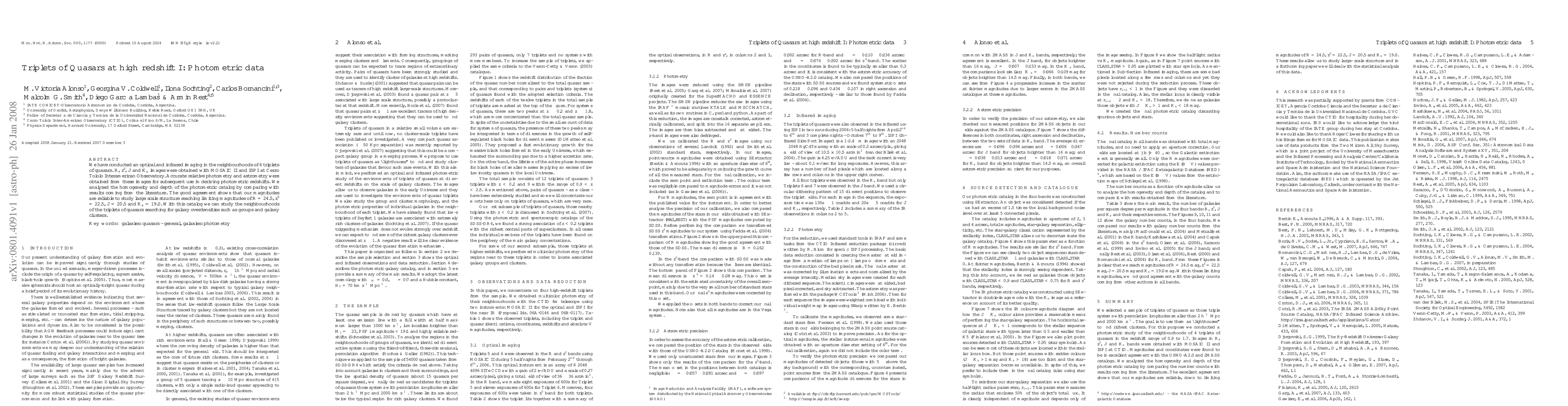 Researchers conducted optical and infrared imaging of 4 quasar triplets to create a reliable photometric catalog, allowing for the study of large-scale structure and galaxy overdensities up to limiting magnitudes of R = 24.5 and Ks = 19.0.