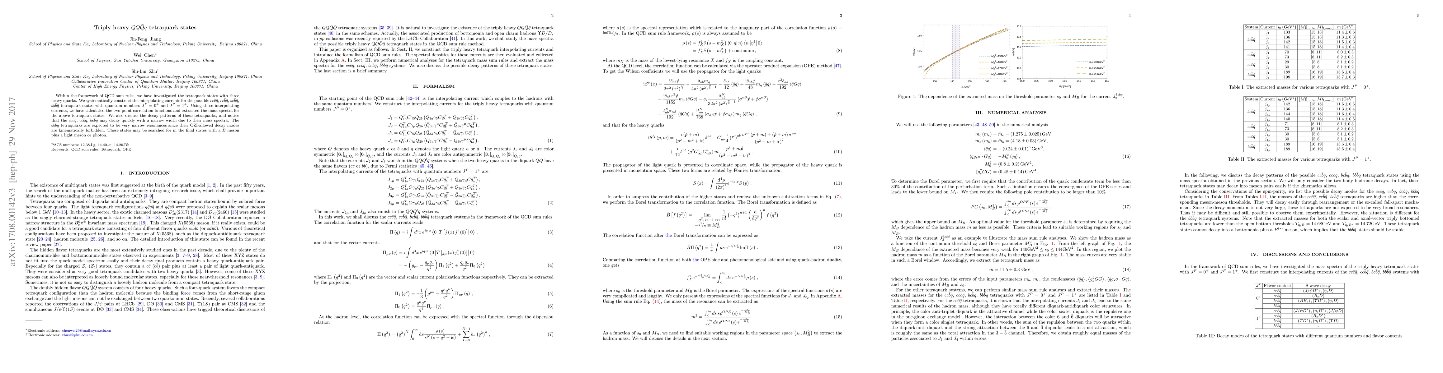 This paper investigates tetraquark states with three heavy quarks using QCD sum rules, calculating their masses and decay patterns. The $cc\bar{c}\bar{q}$, $cc\bar{b}\bar{q}$, and $bc\bar{b}\bar{q}$ tetraquarks are predicted to decay rapidly, while $bb\bar{b}\bar{q}$ tetraquarks are expected to be narrow due to forbidden decay modes.