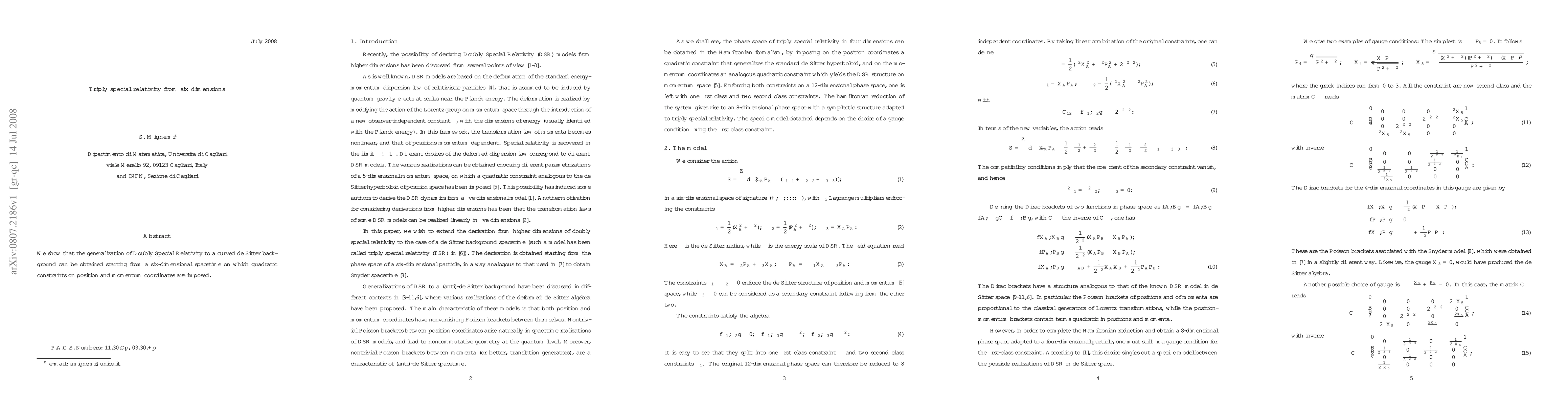 This research demonstrates a six-dimensional spacetime model that generates a curved de Sitter background, thus extending Doubly Special Relativity via imposed quadratic constraints on position and momentum coordinates.