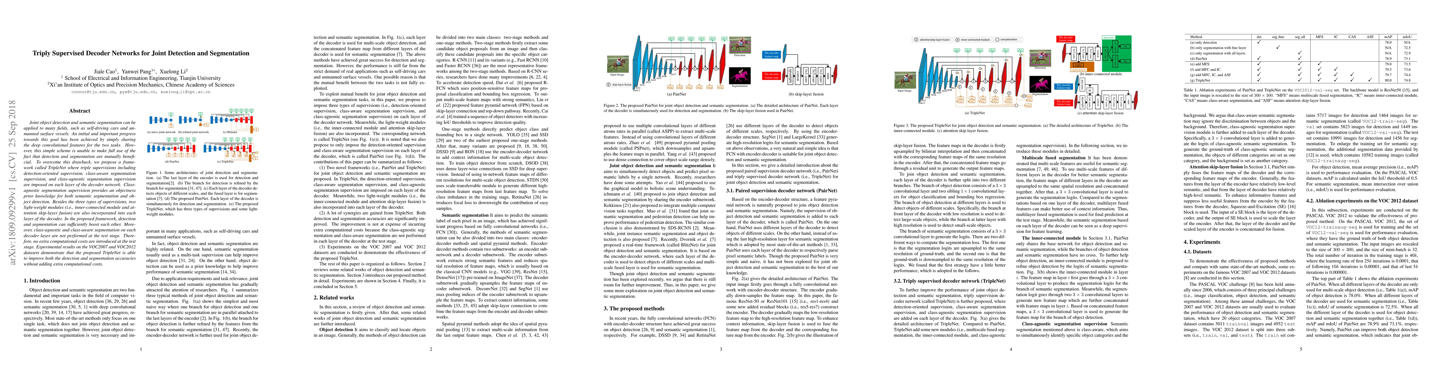 Joint object detection and semantic segmentation can be applied to many fields, such as self-driving cars and unmanned surface vessels. An initial and important progress towards this goal has been achieved by simply sharing the deep convolutional features for the two tasks. However, this simple scheme is unable to make full use of the fact that detection and segmentation are mutually beneficial. To overcome this drawback, we propose a framework called TripleNet where triple supervisions including detection-oriented supervision, class-aware segmentation supervision, and class-agnostic segmentation supervision are imposed on each layer of the decoder network. Class-agnostic segmentation supervision provides an objectness prior knowledge for both semantic segmentation and object detection. Besides the three types of supervisions, two light-weight modules (i.e., inner-connected module and attention skip-layer fusion) are also incorporated into each layer of the decoder. In the proposed framework, detection and segmentation can sufficiently boost each other. Moreover, class-agnostic and class-aware segmentation on each decoder layer are not performed at the test stage. Therefore, no extra computational costs are introduced at the test stage. Experimental results on the VOC2007 and VOC2012 datasets demonstrate that the proposed TripleNet is able to improve both the detection and segmentation accuracies without adding extra computational costs.