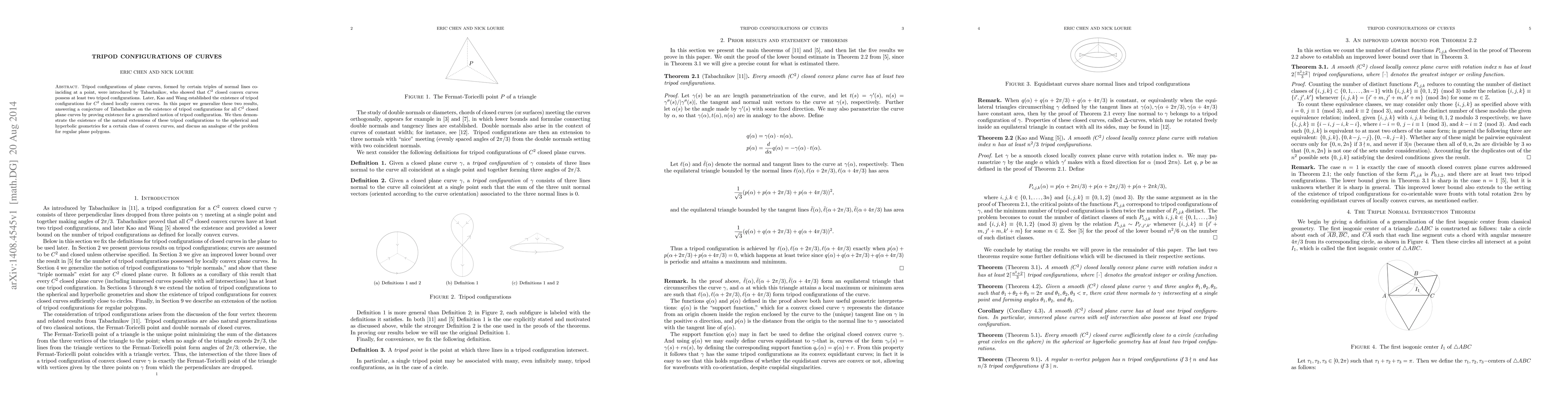 This paper generalizes the existence of tripod configurations for $C^2$ closed plane curves, proving the conjecture for a broader class of curves. It also extends these configurations to spherical and hyperbolic geometries for convex curves and explores analogous problems for regular plane polygons.