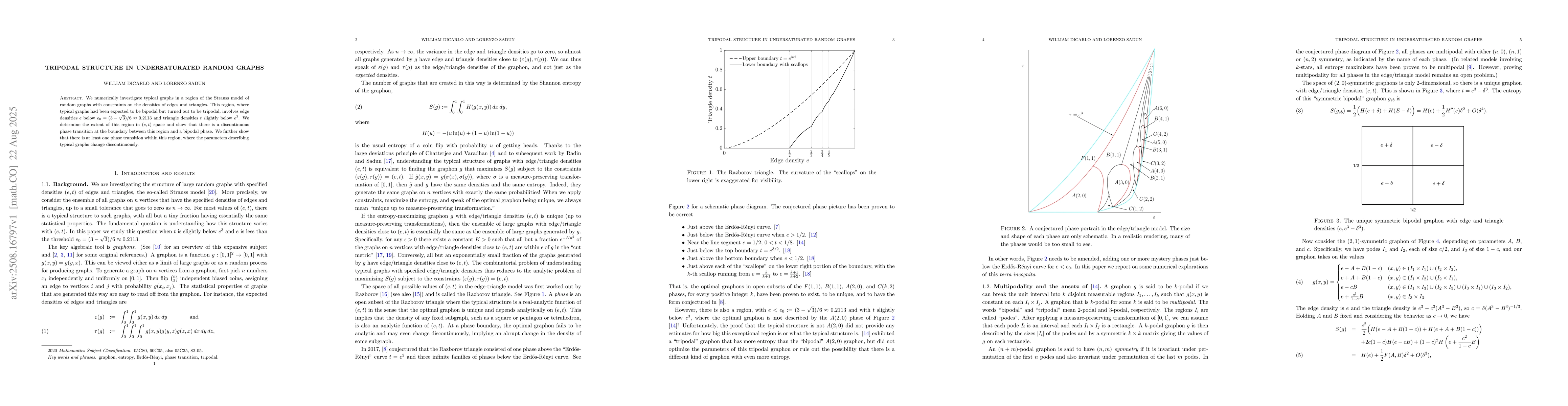 We numerically investigate typical graphs in a region of the Strauss model of random graphs with constraints on the densities of edges and triangles. This region, where typical graphs had been expected to be bipodal but turned out to be tripodal, involves edge densities $e$ below $e_0 = (3-\sqrt{3})/6 \approx 0.2113$ and triangle densities $t$ slightly below $e^3$. We determine the extent of this region in $(e,t)$ space and show that there is a discontinuous phase transition at the boundary between this region and a bipodal phase. We further show that there is at least one phase transition within this region, where the parameters describing typical graphs change discontinuously.