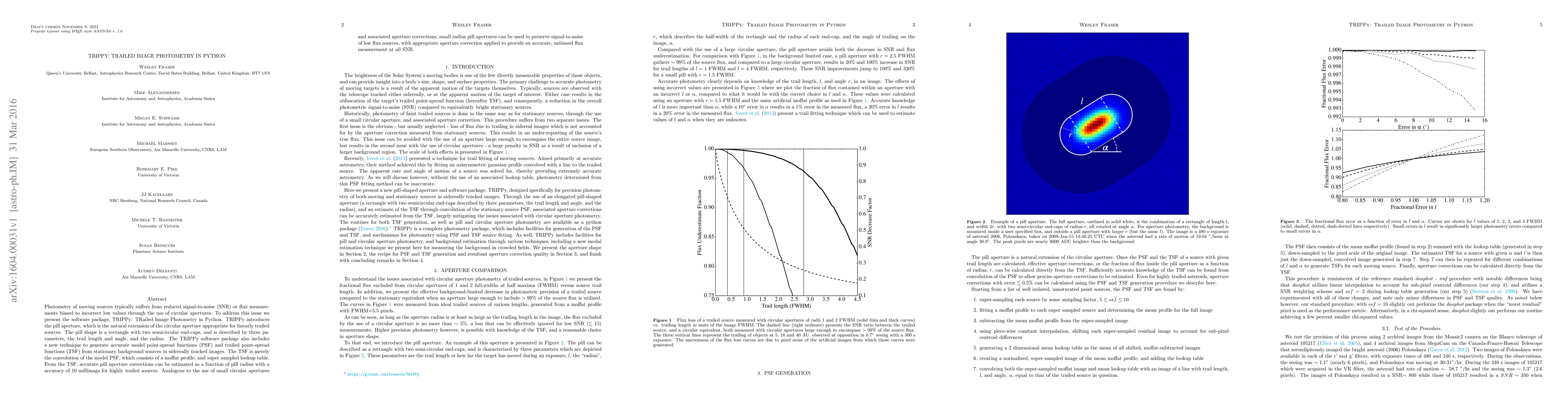 TRIPPy is a Python software package designed to improve photometry of moving sources by using a pill-shaped aperture instead of circular ones, which better handles trailed sources. It also generates accurate model PSF and TSF for precise flux measurements, ensuring unbiased results across different signal-to-noise ratios.