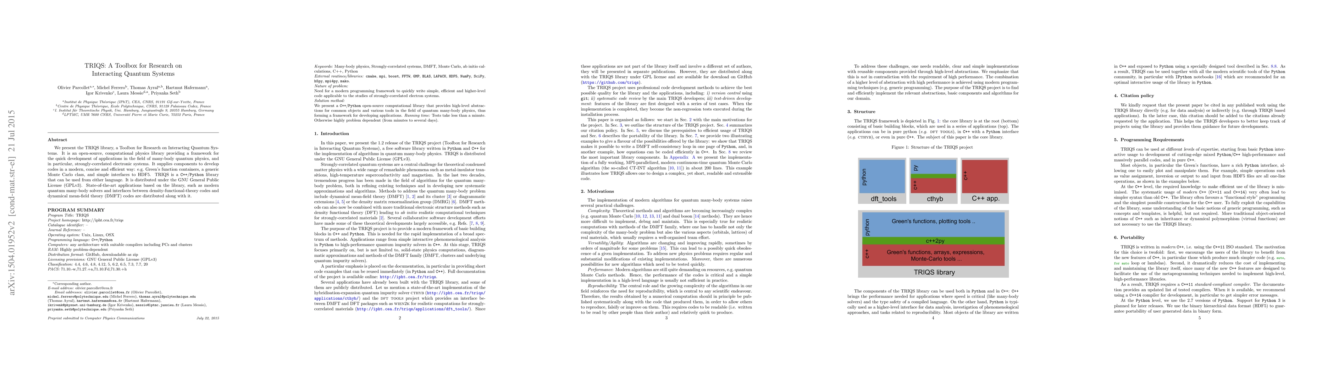 We present the TRIQS library, a Toolbox for Research on Interacting Quantum Systems. It is an open-source, computational physics library providing a framework for the quick development of applications in the field of many-body quantum physics, and in particular, strongly-correlated electronic systems. It supplies components to develop codes in a modern, concise and efficient way: e.g. Green's function containers, a generic Monte Carlo class, and simple interfaces to HDF5. TRIQS is a C++/Python library that can be used from either language. It is distributed under the GNU General Public License (GPLv3). State-of-the-art applications based on the library, such as modern quantum many-body solvers and interfaces between density-functional-theory codes and dynamical mean-field theory (DMFT) codes are distributed along with it.