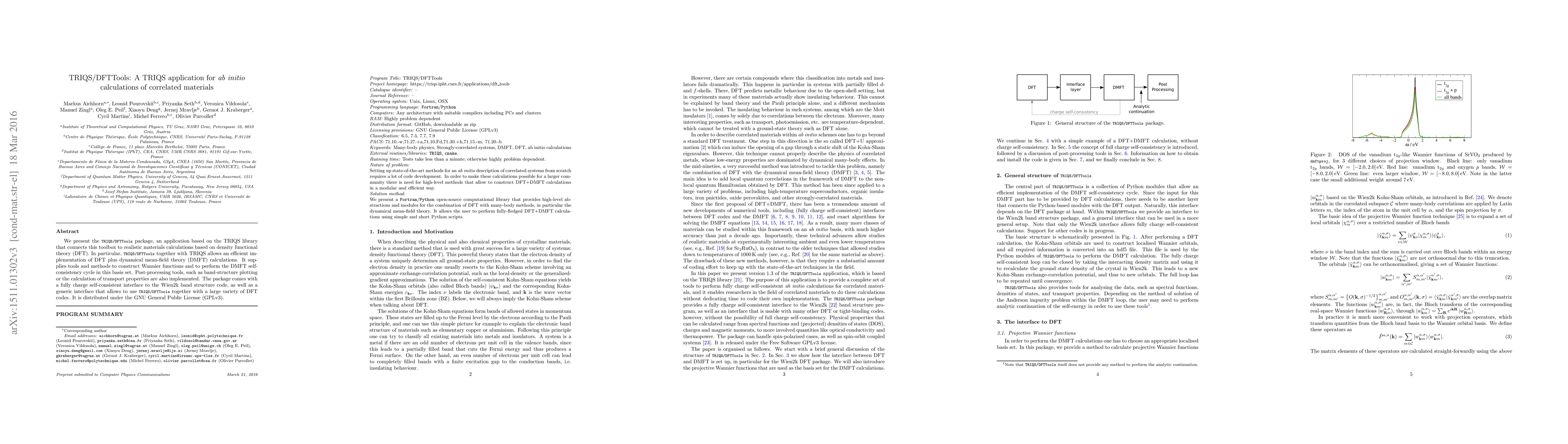 TRIQS/DFTTools is an application that connects the TRIQS library to density functional theory (DFT) calculations for correlated materials, enabling efficient DFT plus dynamical mean-field theory (DMFT) implementations and providing tools for Wannier function construction and post-processing. It is distributed under the GPLv3 license.
