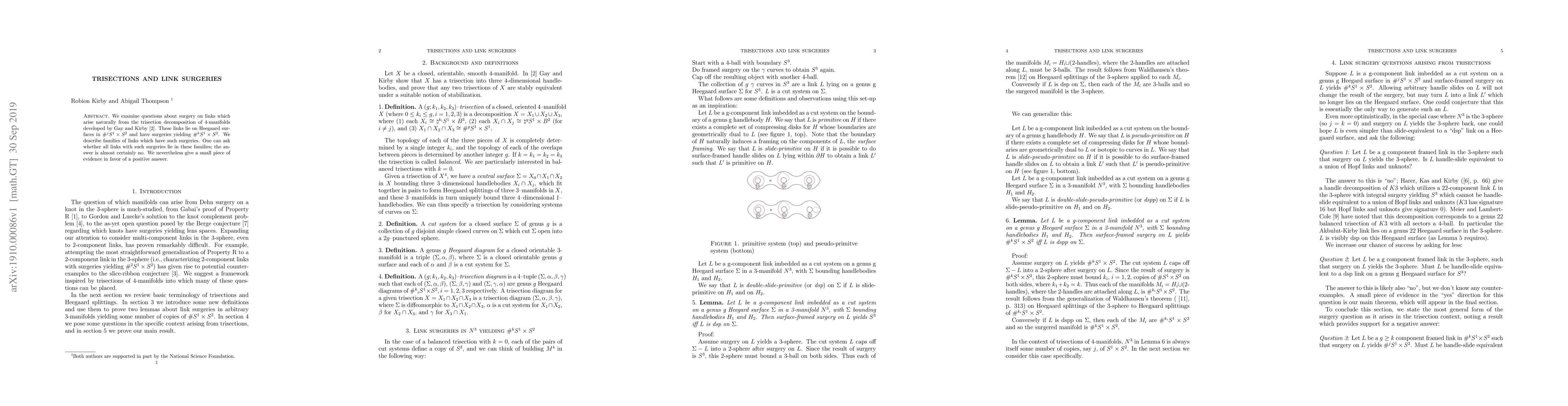 This paper explores link surgeries arising from trisection decompositions of 4-manifolds, focusing on links on Heegaard surfaces in connected sums of tori and 2-spheres. It identifies families of such links and provides partial evidence supporting the conjecture that not all such links belong to these families.