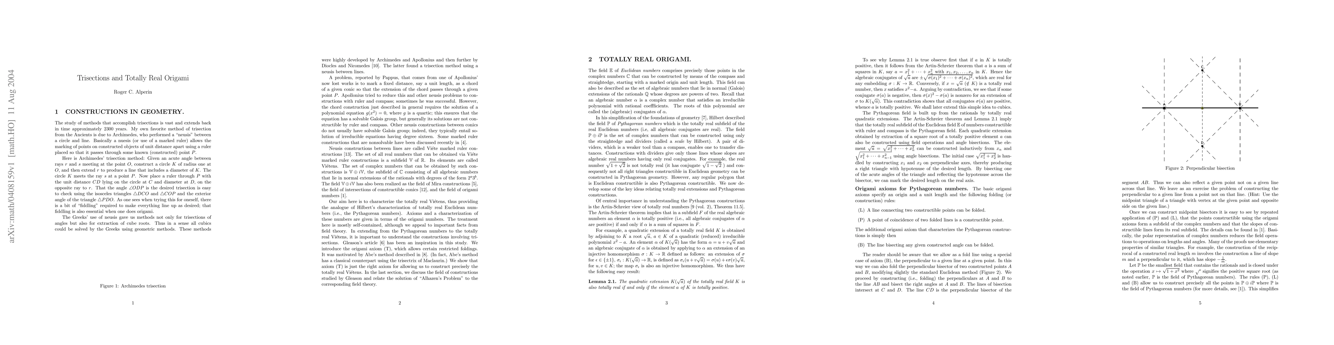 We introduce a trisection axiom for mathematical origami and descibe the totally real origami numbers. We also discuss the solution of Alhazen's problem and its relation to trisections.