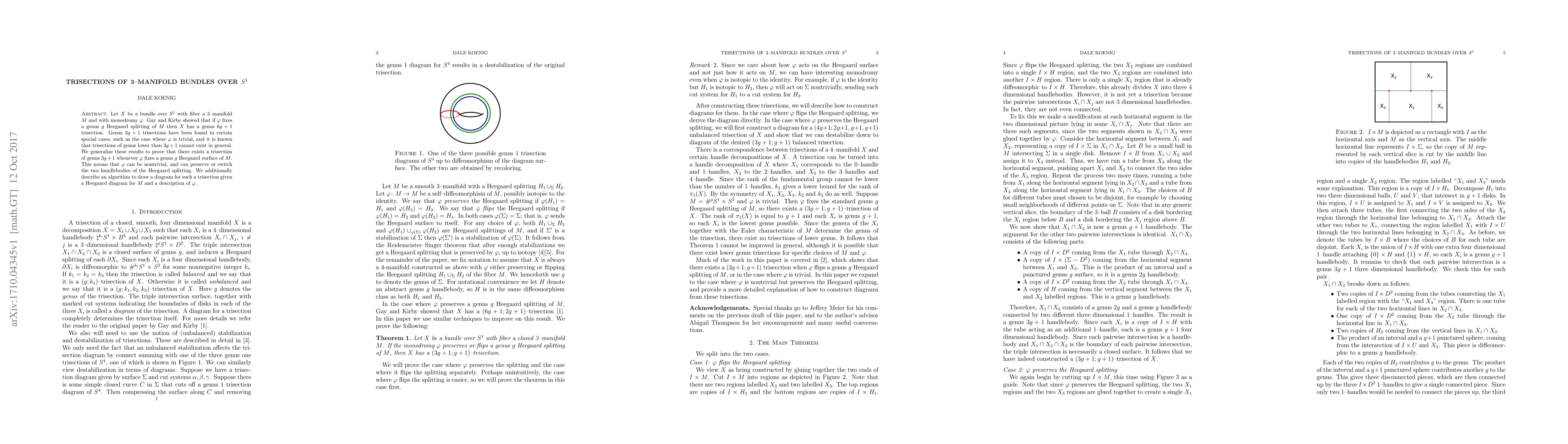 Researchers generalize a previous finding to prove that every bundle over $S^1$ with a 3-manifold fiber can have a trisection of genus $3g+1$, where $g$ is the genus of its Heegaard splitting, even if the monodromy is non-trivial.