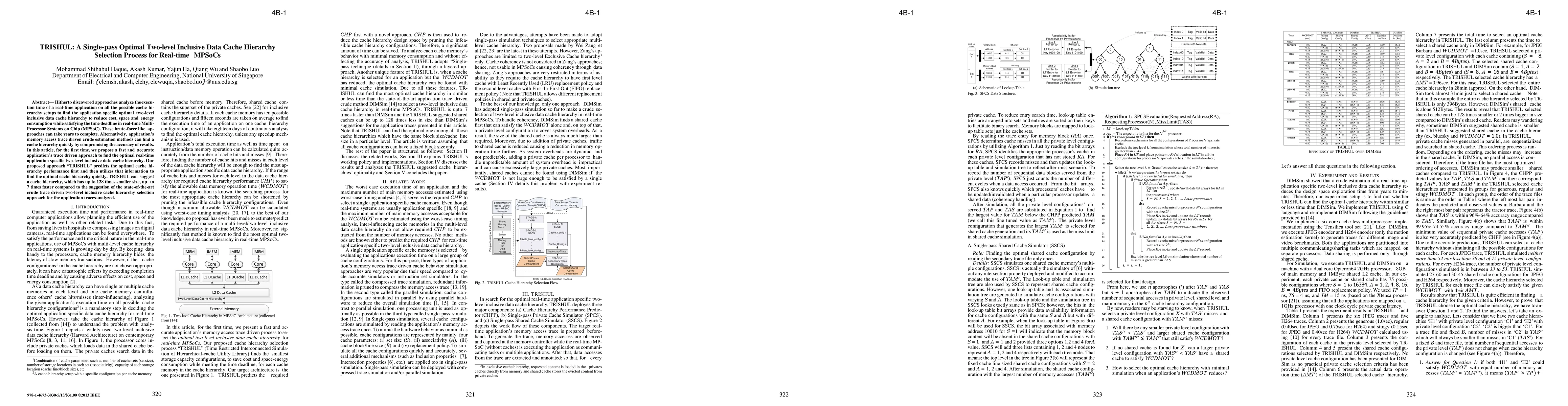 The paper proposes TRISHUL, a novel trace-driven approach for quickly determining the optimal two-level inclusive data cache hierarchy in real-time Multiprocessor Systems on Chip (MPSoCs), significantly reducing time, cost, space, and energy consumption compared to existing brute force methods. TRISHUL achieves up to 128 times smaller cache sizes and up to 7 times faster performance than state-of-the-art crude estimation methods.
