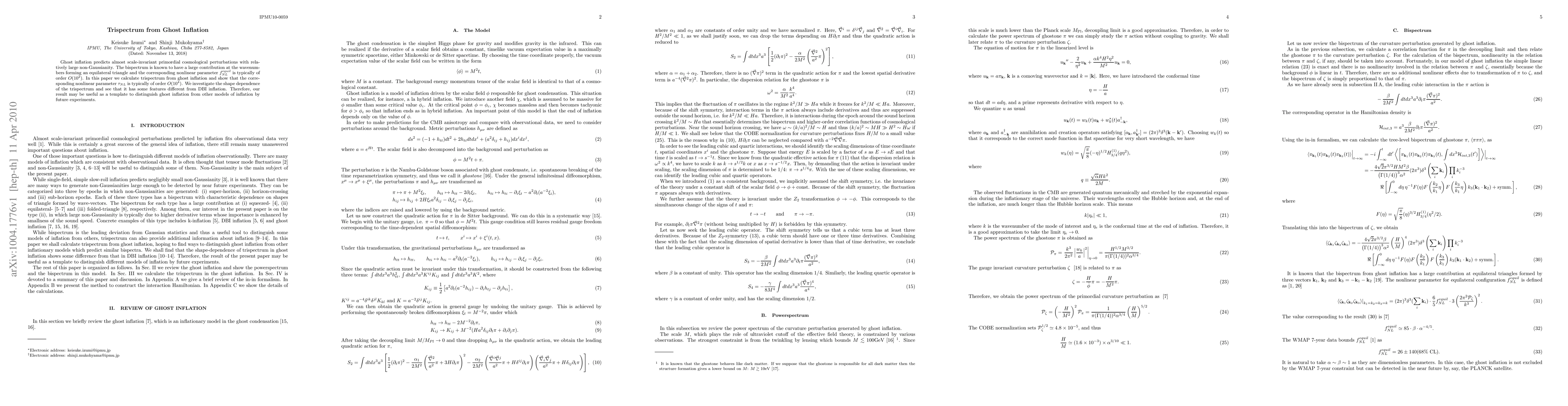 This paper calculates the trispectrum from ghost inflation, finding that the nonlinear parameter $\tau_{NL}$ is typically of order $O(10^4)$, significantly larger than the bispectrum's $f_{NL}^{equil}$. The shape dependence of the trispectrum differs from DBI inflation, potentially aiding future experiments in distinguishing ghost inflation from other inflationary models.