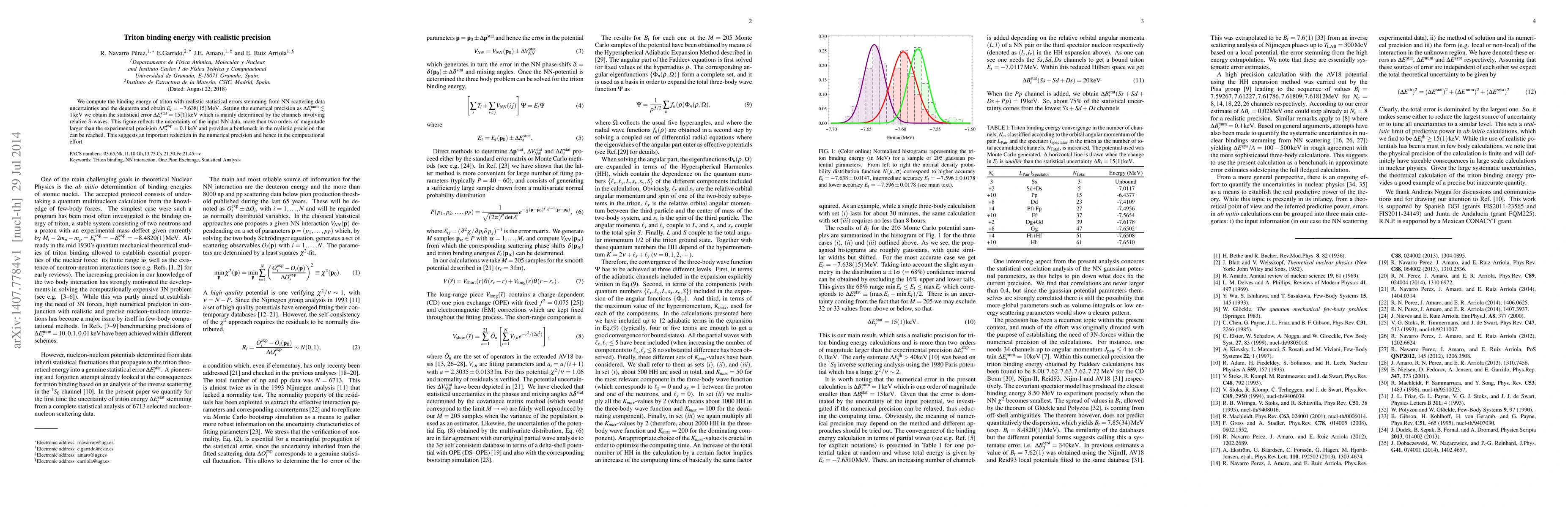 We compute the binding energy of triton with realistic statistical errors stemming from NN scattering data uncertainties and the deuteron and obtain $E_t=-7.638(15) \, {\rm MeV}$. Setting the numerical precision as $\Delta E_t^{\rm num} \lesssim 1 \, {\rm keV}$ we obtain the statistical error $\Delta E_t^{\rm stat}= 15(1) \, {\rm keV}$ which is mainly determined by the channels involving relative S-waves. This figure reflects the uncertainty of the input NN data, more than two orders of magnitude larger than the experimental precision $\Delta E_t^{\rm exp}= 0.1 \, {\rm keV}$ and provides a bottleneck in the realistic precision that can be reached. This suggests an important reduction in the numerical precision and hence in the computational effort.