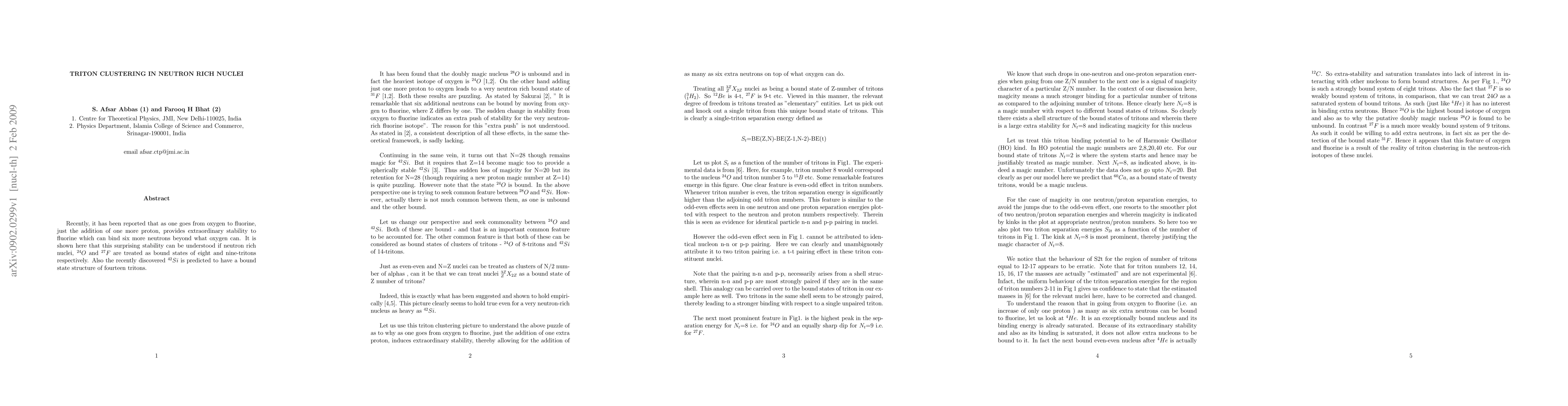 Recently, it has been reported that as one goes from oxygen to fluorine, just the addition of one more proton, provides extraordinary stability to fluorine which can bind six more neutrons beyond what oxygen can. It is shown here that this surprising stability can be understood if neutron rich nuclei, $^{24}O$ and $^{27}F$ are treated as bound states of eight and nine-tritons respectively. Also the recently discovered $^{42}Si$ is predicted to have a bound state structure of fourteen tritons.