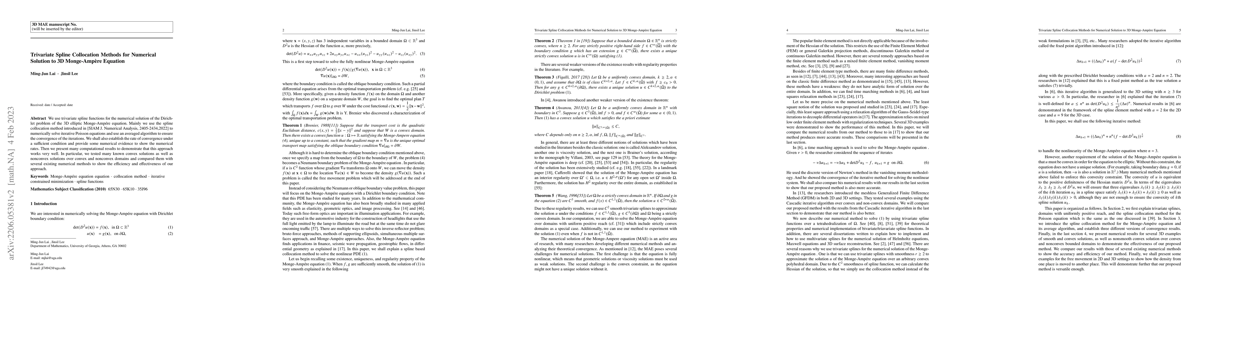 This paper proposes a trivariate spline collocation method for solving the 3D elliptic Monge-Ampère equation, demonstrating its effectiveness through iterative Poisson equation solutions and convergence analysis. The method is shown to outperform existing techniques in various computational tests.