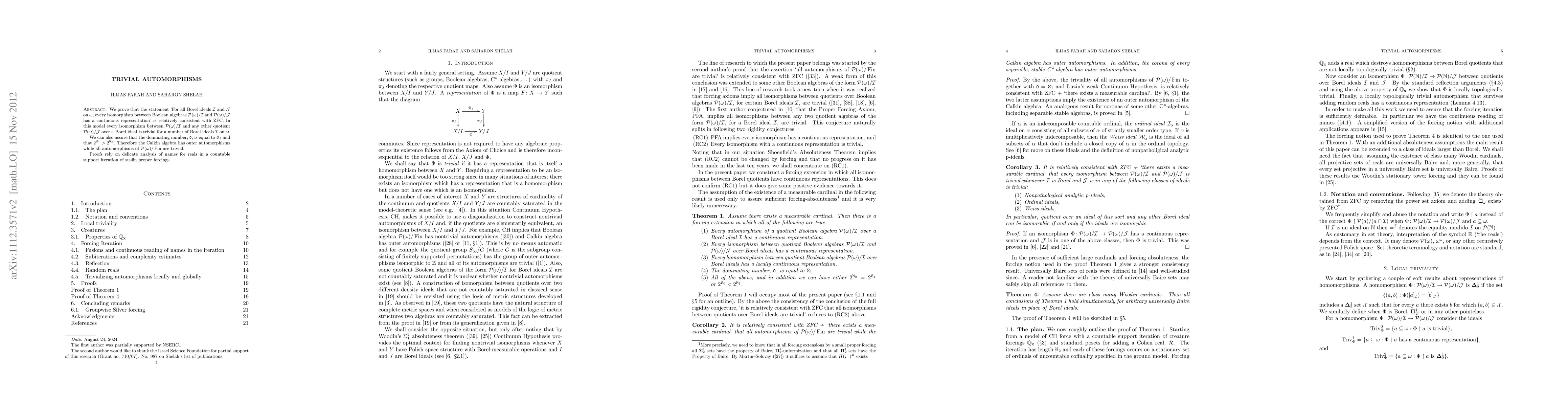 This paper demonstrates that within ZFC, every isomorphism between quotient Boolean algebras $P(\omega)/I$ and $P(\omega)/J$ over Borel ideals is trivial for certain Borel ideals. It also shows that the dominating number equals $\aleph_1$ and $2^{\aleph_1} > 2^{\aleph_0}$, leading to the existence of outer automorphisms in the Calkin algebra while all automorphisms of $P(\omega)/Fin$ are trivial.