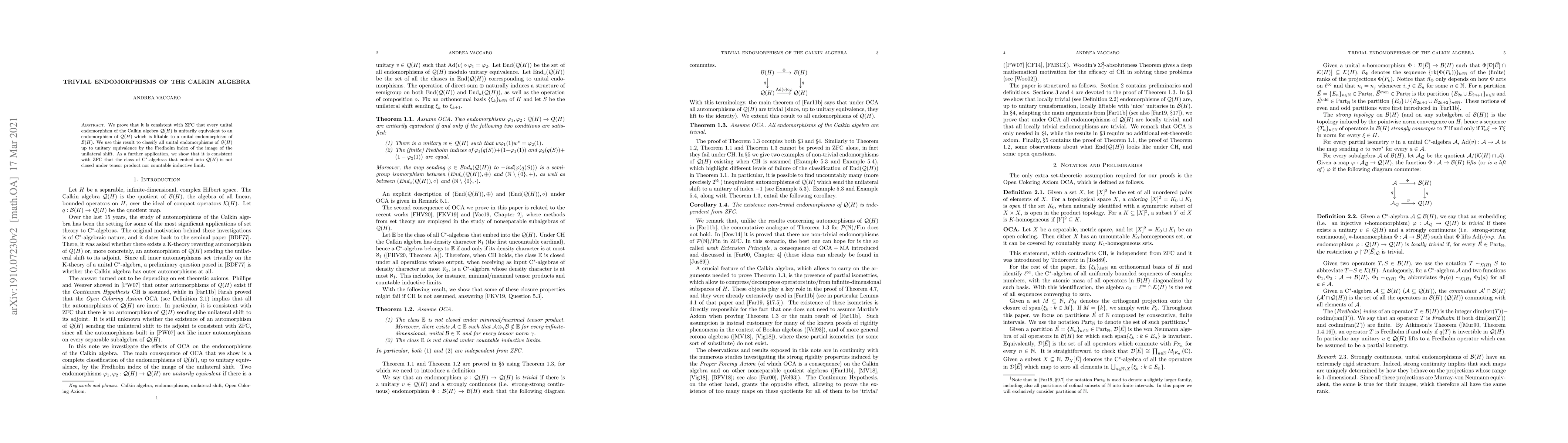 Researchers prove that every unital endomorphism of the Calkin algebra can be unitarily equivalent to an endomorphism lifting to a unital endomorphism of the Banach algebra, classifying endomorphisms by Fredholm index.