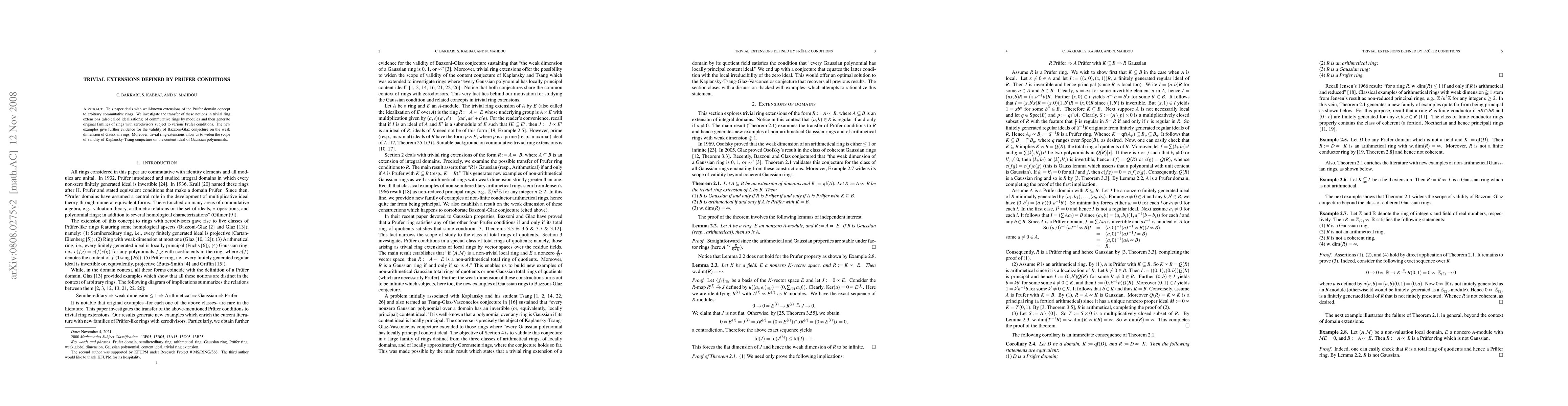 This paper explores trivial extensions of Prufer domains to commutative rings via modules, creating new families of rings with zerodivisors that satisfy various Prufer conditions, supporting Bazzoni-Glaz's conjecture on Gaussian rings' weak dimension and extending Kaplansky-Tsang's conjecture on Gaussian polynomials' content ideals.