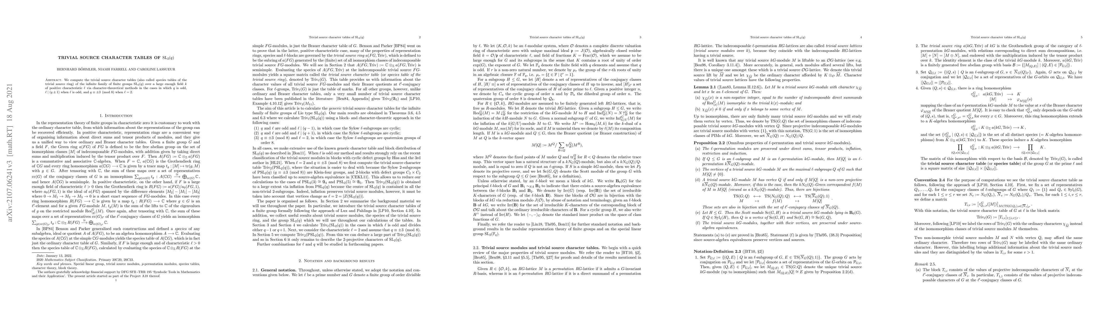 Summary: This paper computes the trivial source character tables for the groups SL(2,q) using character-theoretical methods for specific cases where q is odd and under conditions on the characteristic $\ell$. The results apply when $\ell$ divides (q±1) for odd $\ell$ and when q is congruent to ±3 modulo 8 for $\ell=2$.