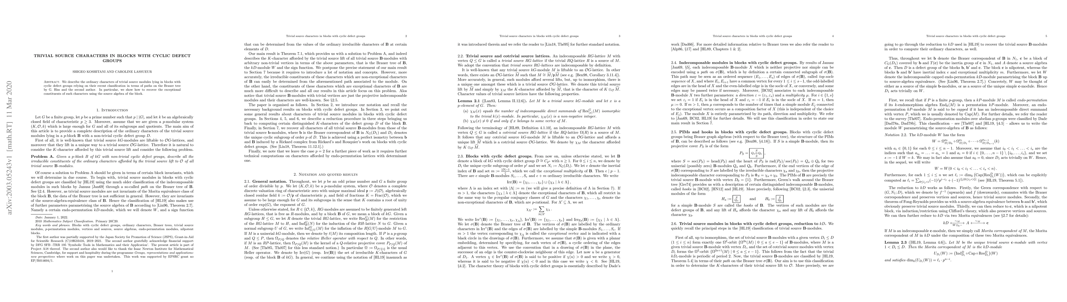 This paper classifies ordinary characters of trivial source modules in blocks with cyclic defect groups, utilizing their representation on the Brauer tree, and demonstrates how to identify exceptional constituents through the block's source algebra.